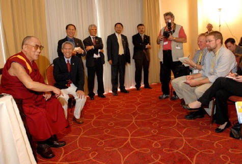 Tại một hội nghị thông tin ở Crowne Plaza trước khi nói chuyện tại Hí viện Palace,  lãnh tụ tinh thần lưu vong của Phật Giáo Tây Tạng đã ban rãi tuệ trí dịu dàng cho cho dù Ngài được hỏi về khủng hoảng kinh tế toàn cầu hay sự thay đổi khí hậu.