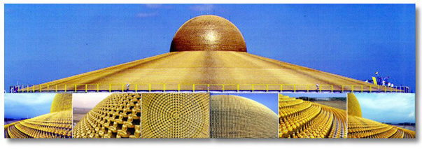 Theravada. Vòm đỉnh tròn ở trên gồm có 300.000 tượng, mỗi tượng cao 18